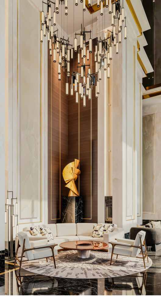 Situated in the heart of Dubai, Waldorf Astoria Residences Dubai Business Bay offer a sophisticated metropolitan lifestyle, with the iconic Burj Khalifa, the dazzling Dubai Mall, and the bustling business district of Downtown Dubai right at your doorstep. The strategic location inspired an elegant, city-centric interior design, creating a luxurious sanctuary amidst the pulse of the city.