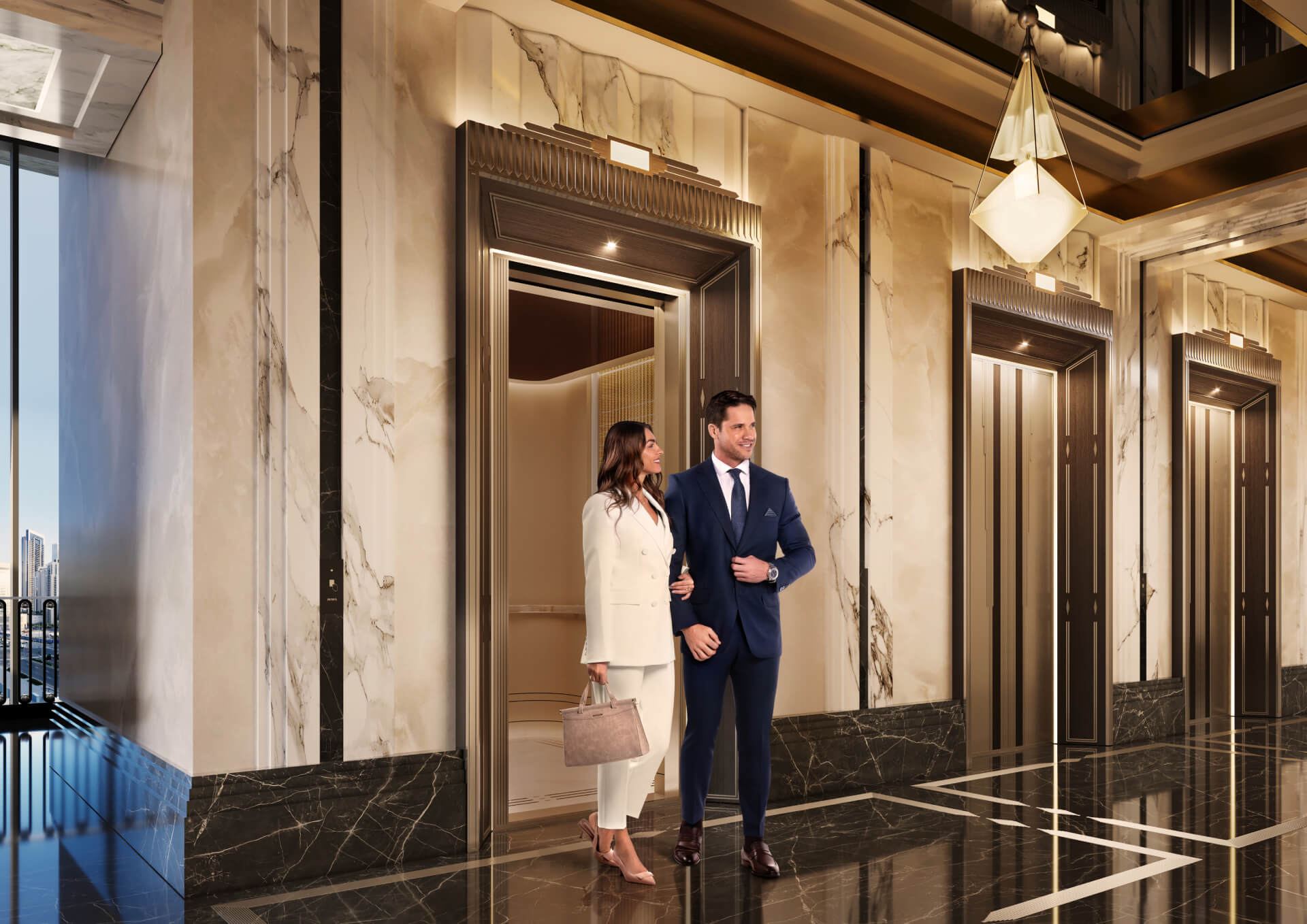 Refined and gracefully designed, the reception area at Waldorf Astoria Residences Dubai Business Bay sets the tone for an exceptional lifestyle. With a 24/7 Personal Concierge at your service, every arrival is met with effortless elegance, personalized attention, and the legendary hospitality synonymous with Waldorf Astoria Residences Dubai Business Bay.